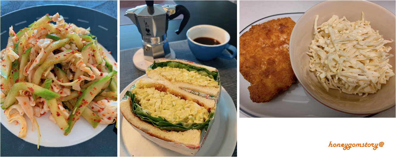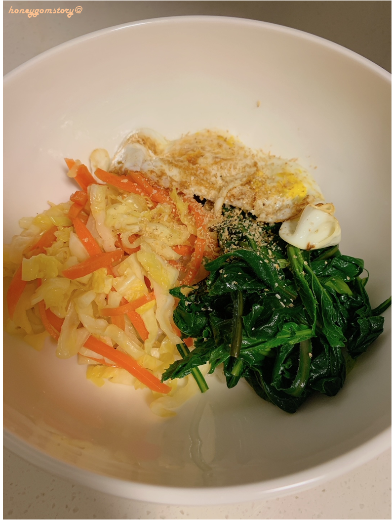 아침에 꿀벌은 매번 샐러드를 챙겨 먹는 편이다. 그날그날 집에 있는 채소를 활용한다.