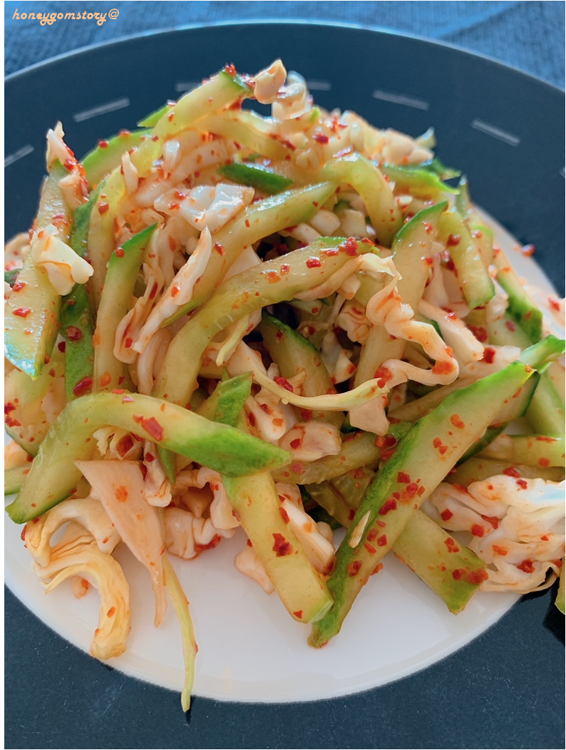 소고기나 돼지고기에 곁들이거나 밥반찬으로 먹어도 상관없다. 비빔면이나 쫄면 고명으로도 괜찮고, 그냥 그대로도 훌륭한 한식 샐러드이다.