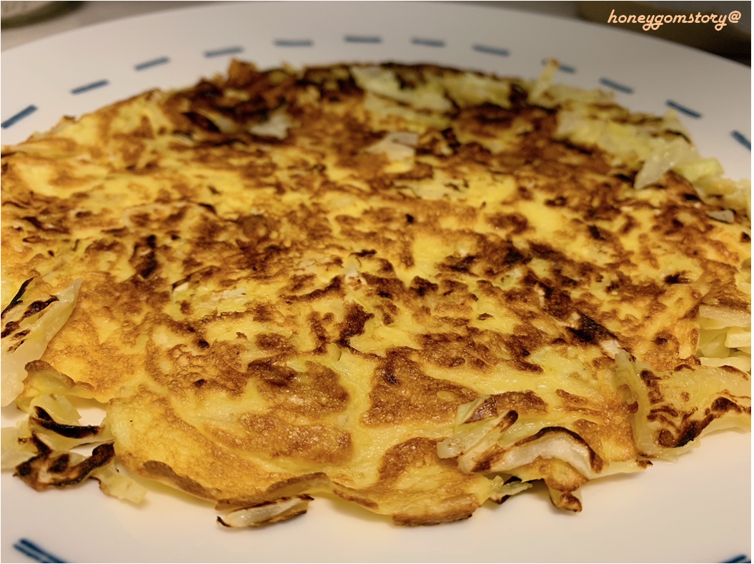 - 달군 팬에 기름을 넉넉히 두르고, 2. 를 팬에 골고루 펴서 앞 뒤로 익혀준다.