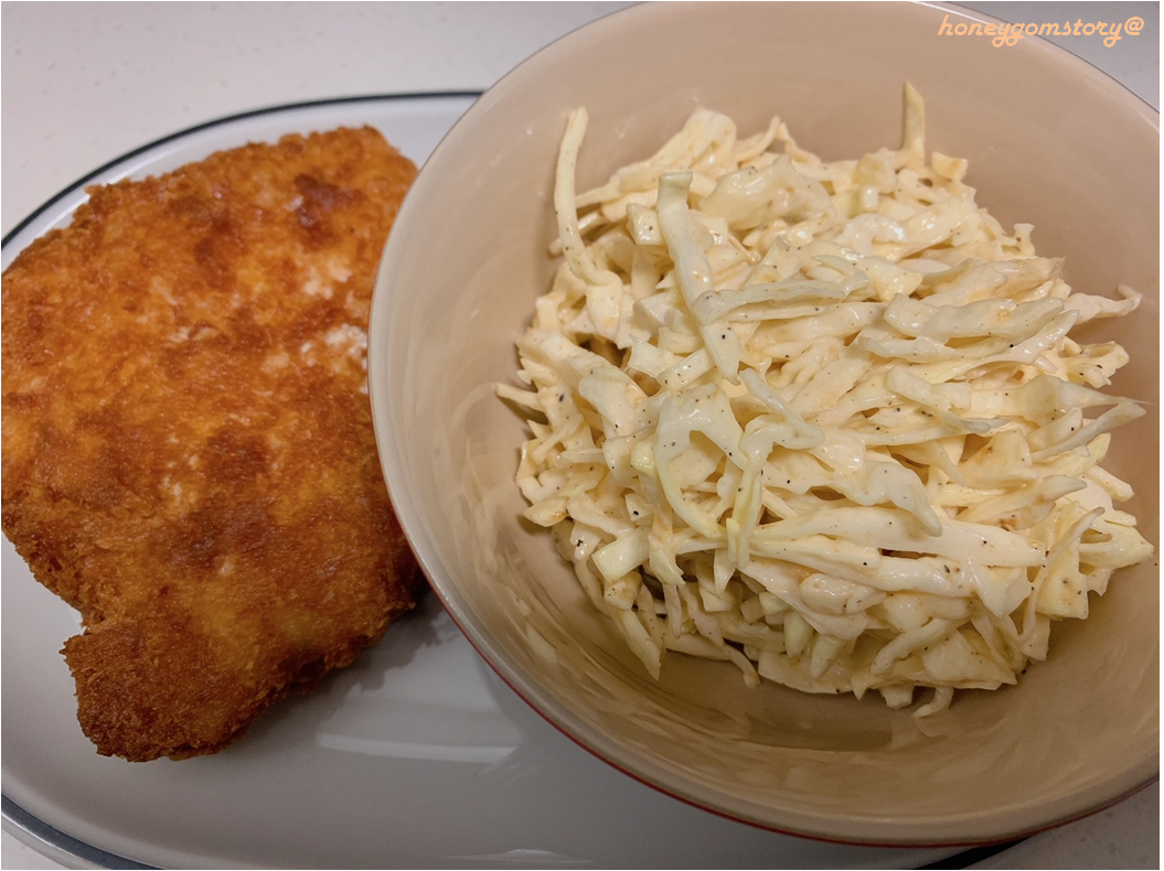 이 밖에도 돈가스의 단짝으로 양배추 마요네즈 샐러드를 곁들이고,
