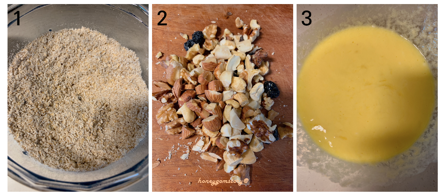- 4. 에 다진 견과류/건과일과 꿀을 넣고 고루 섞어준다.