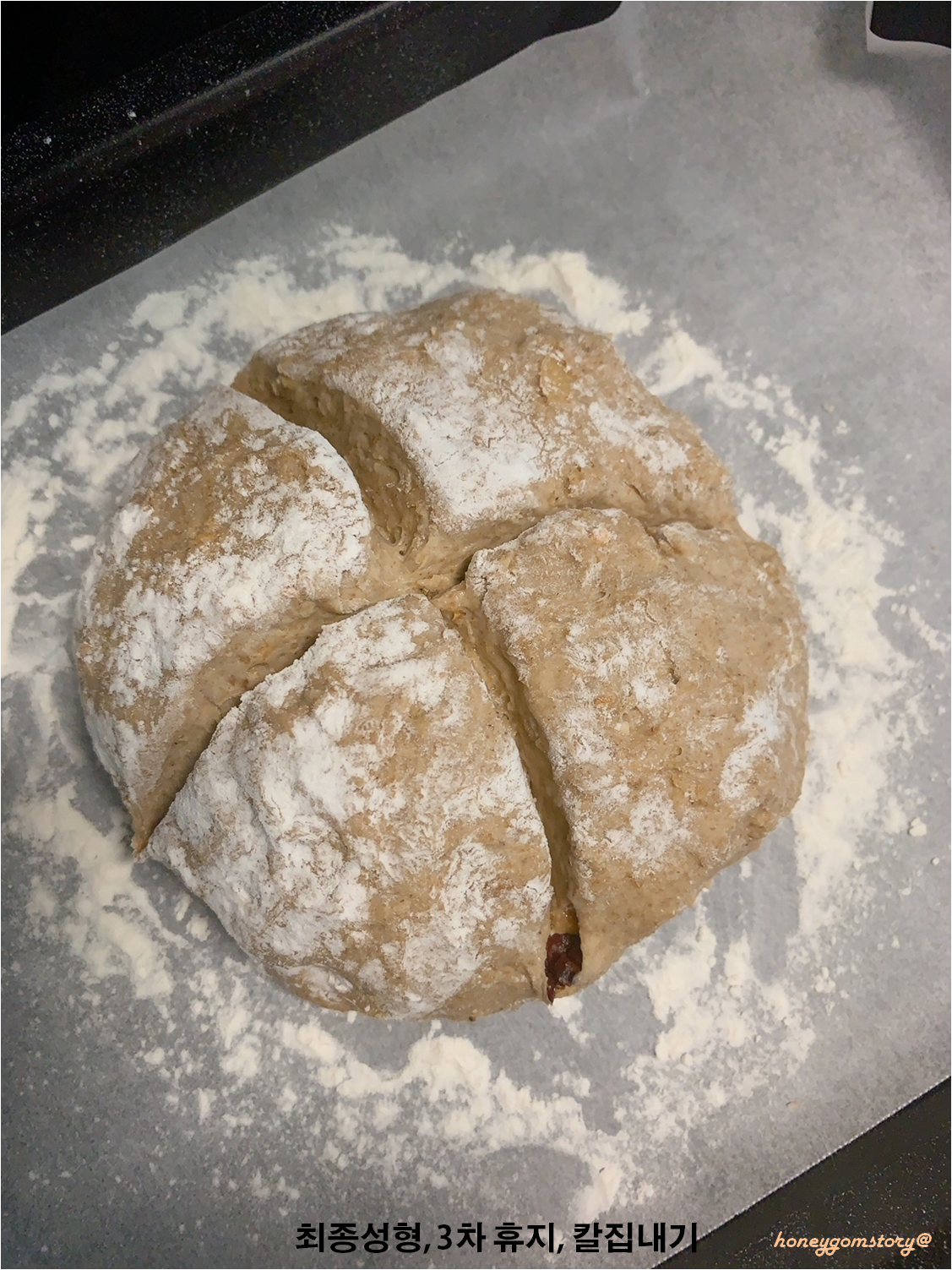 통밀빵이든 호밀빵이든 하룻밤 상온에 두고 숙성시켜도 되지만 요즘같은 더운 날씨에 자칫 반죽이 쉴 수 있어 안전하게 냉장고에 넣어놓는다. 혹시나 일이 생겨 다음날 바로 빵을 만들지 못하더라도 하루 이상 냉장고에 넣어두는 것은 괜찮다. 냉장고에서 꺼낸 저온발효 반죽의 질감에 따라 밀가루를 더 넣거나 상온에서 숙성하는 시간을 조절하면서 만들면 된다. 물론 결과물은 조금씩 달라질 수 있지만 말한대로 조금 못생겨도 내 입맛에 만족스럽기만 하면 그만이다.